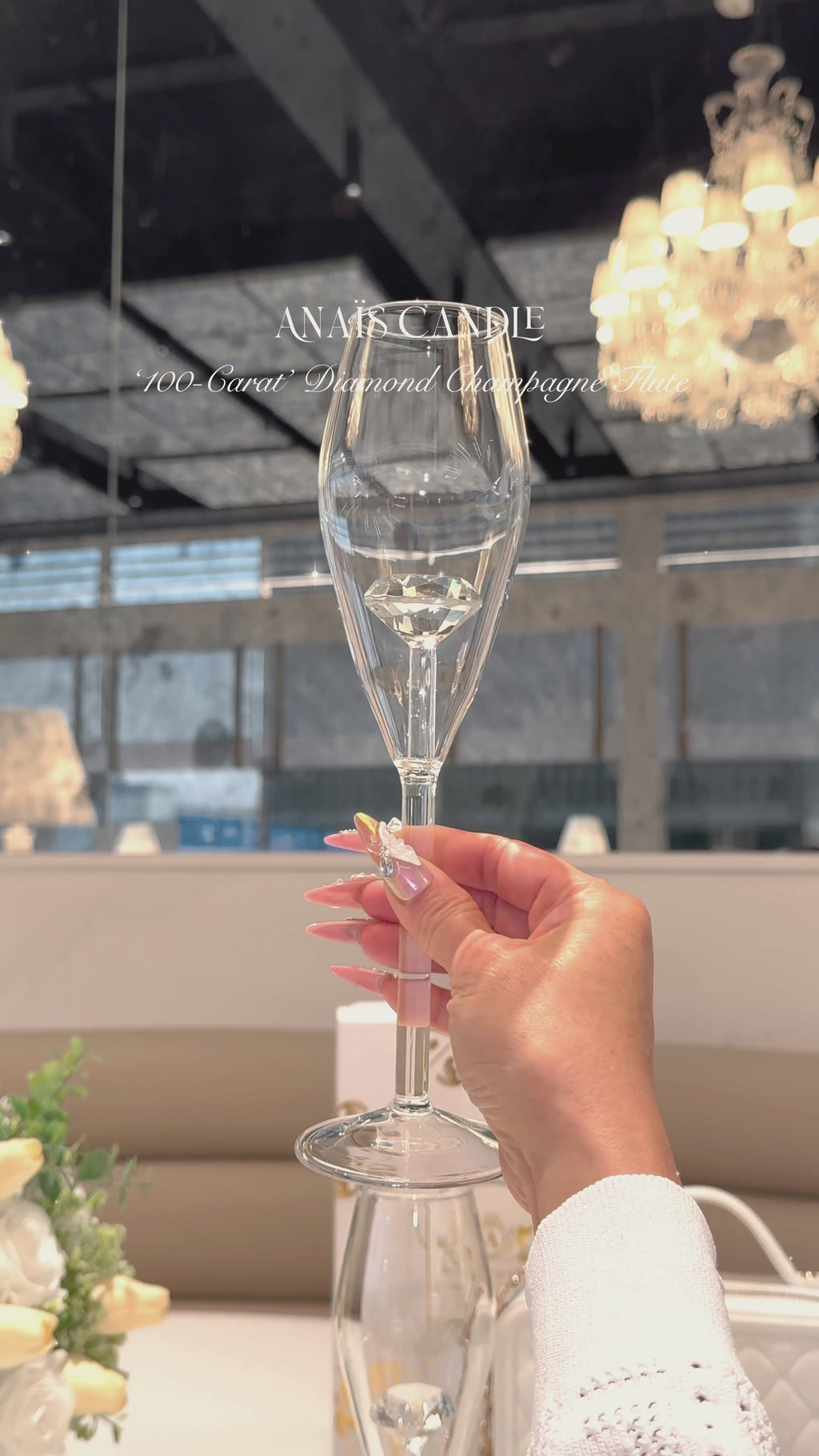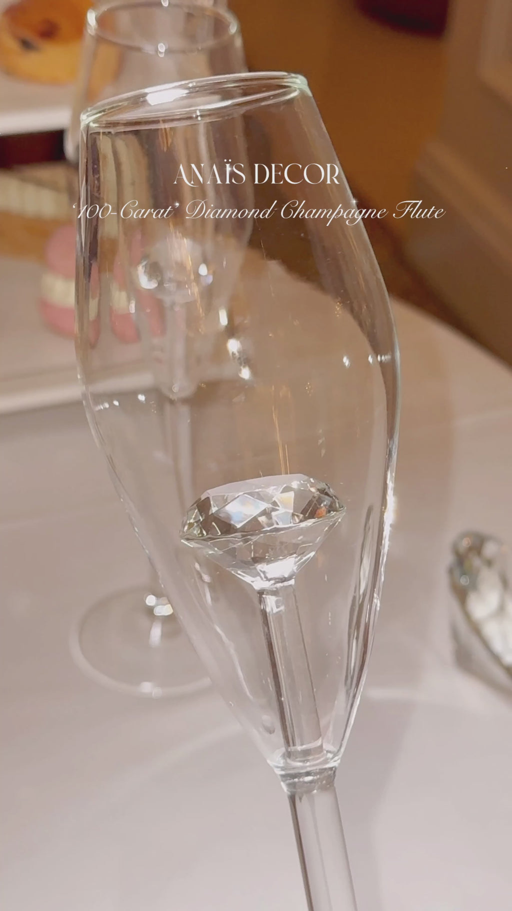 Original Anaïs Decor design with sparkling diamonds, a lavish delight, Sip in elegance, beneath the crystal light. The ‘100-Carat’ Diamond Champagne Flutes, crafted by hand. Each glass a treasure, uniquely designed.