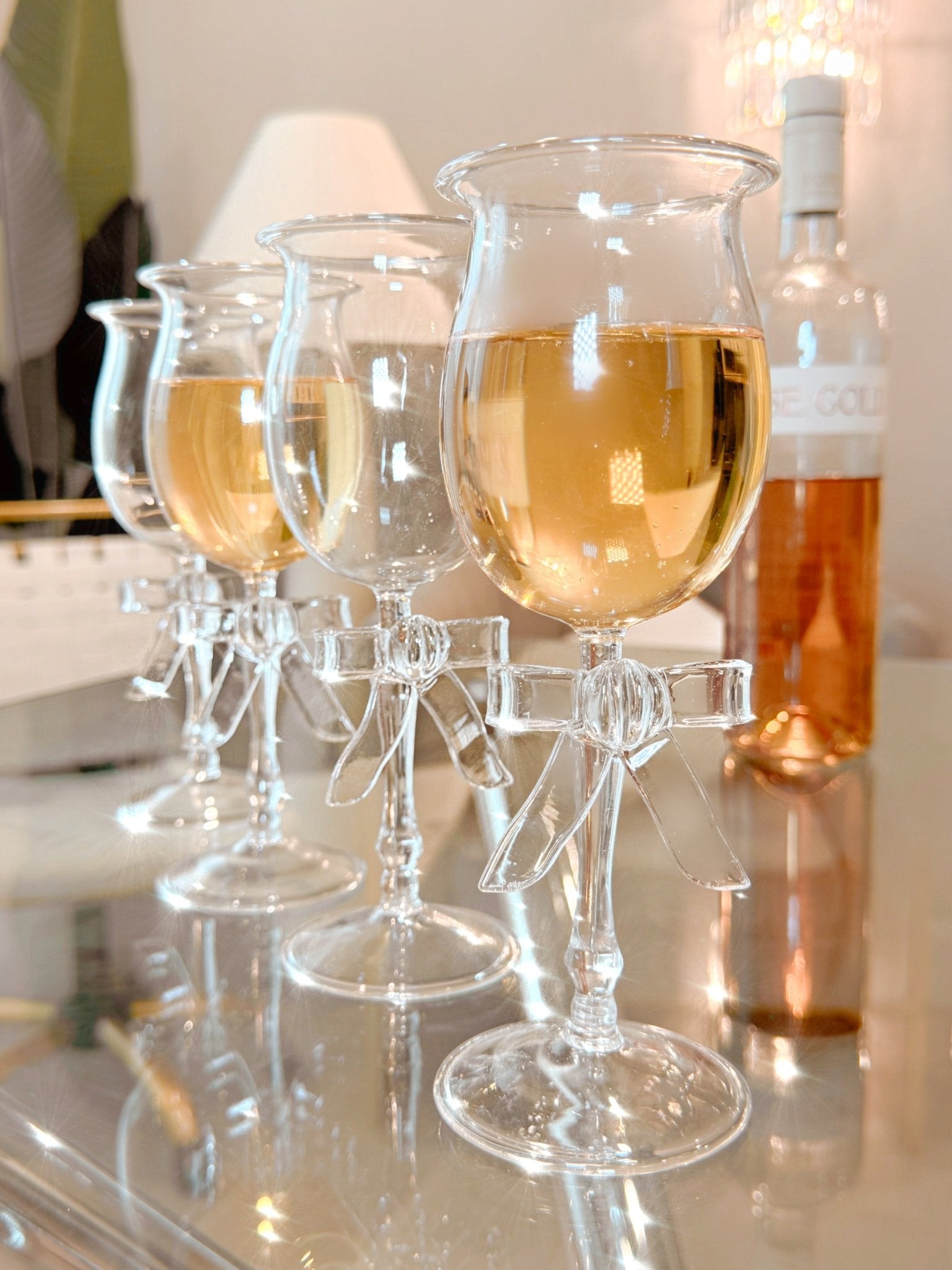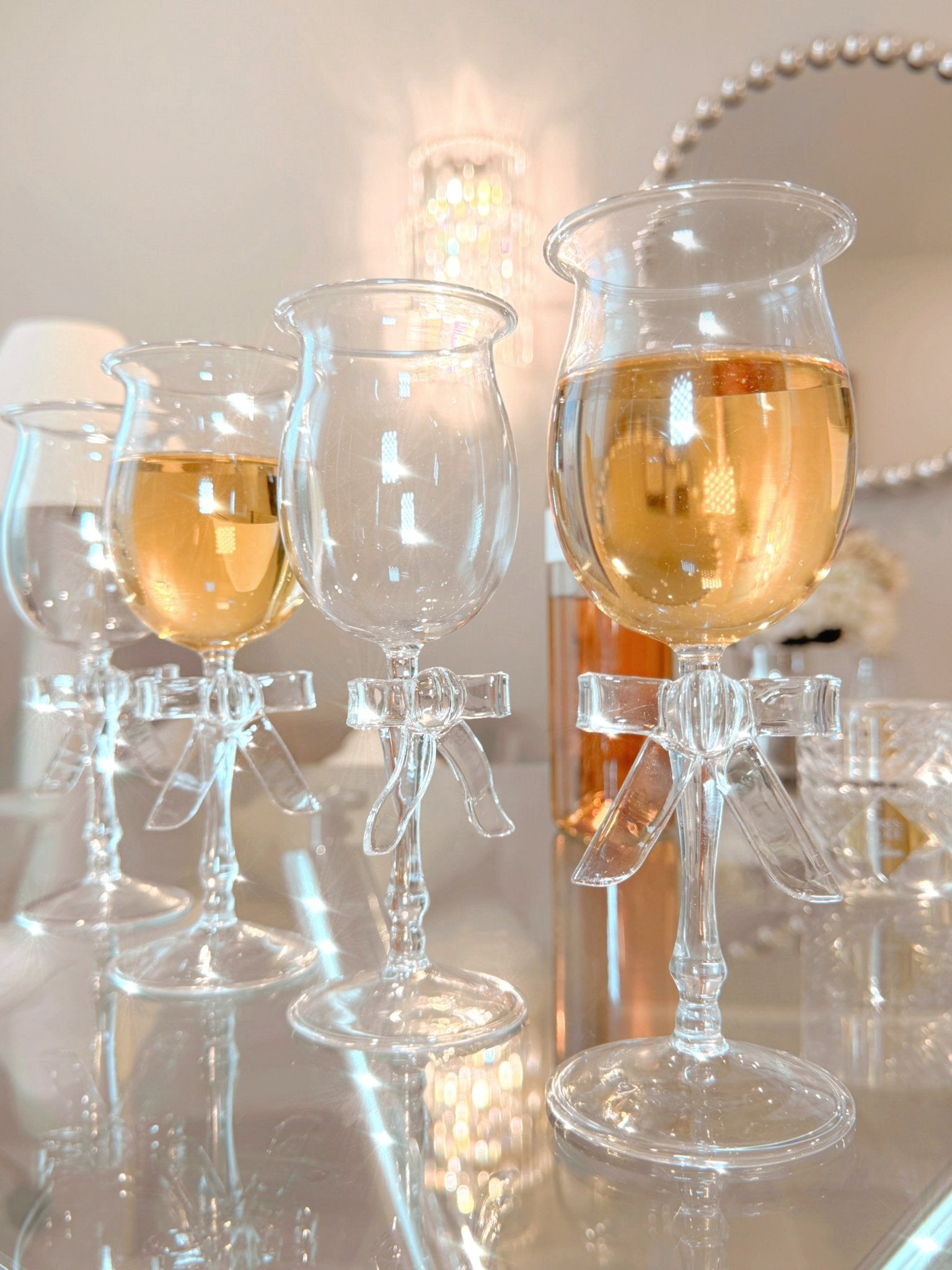 Add an elegant touch to your celebrations with the Charlotte Bow Wine Glass Cup Set. Adorned with a graceful bow design, these exquisite glasses bring glamour to toasts at holiday parties, weddings, or cozy gatherings.