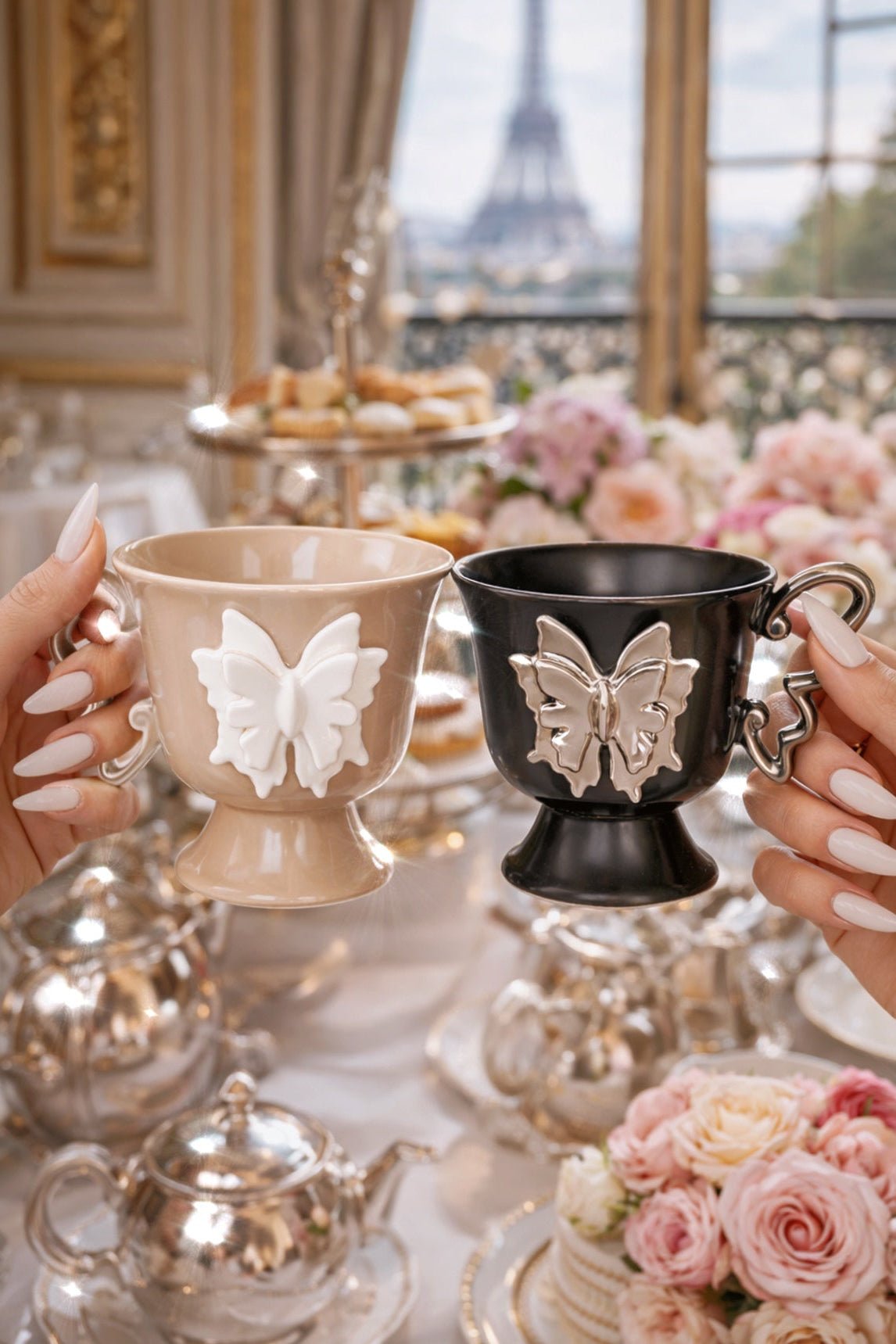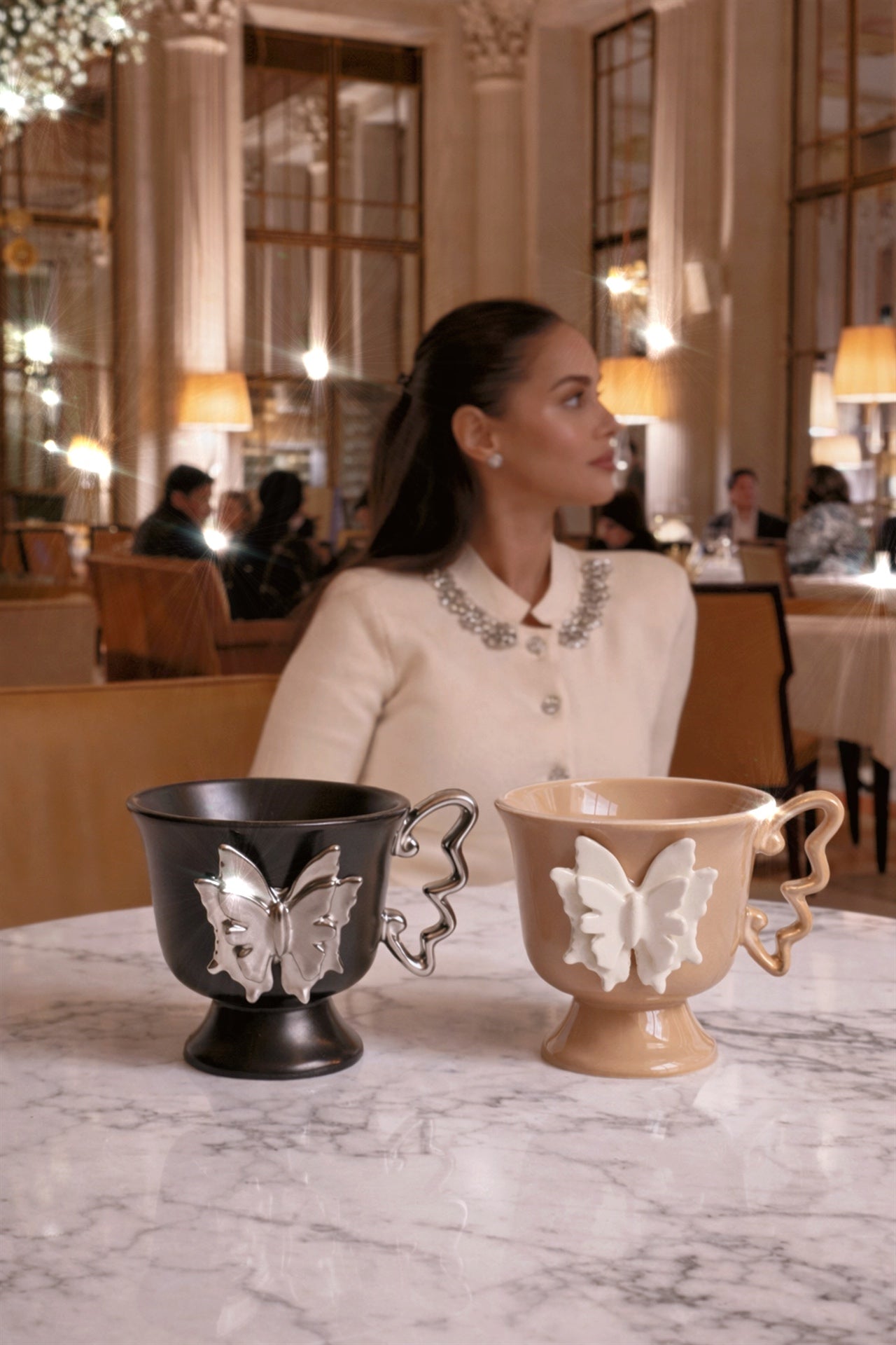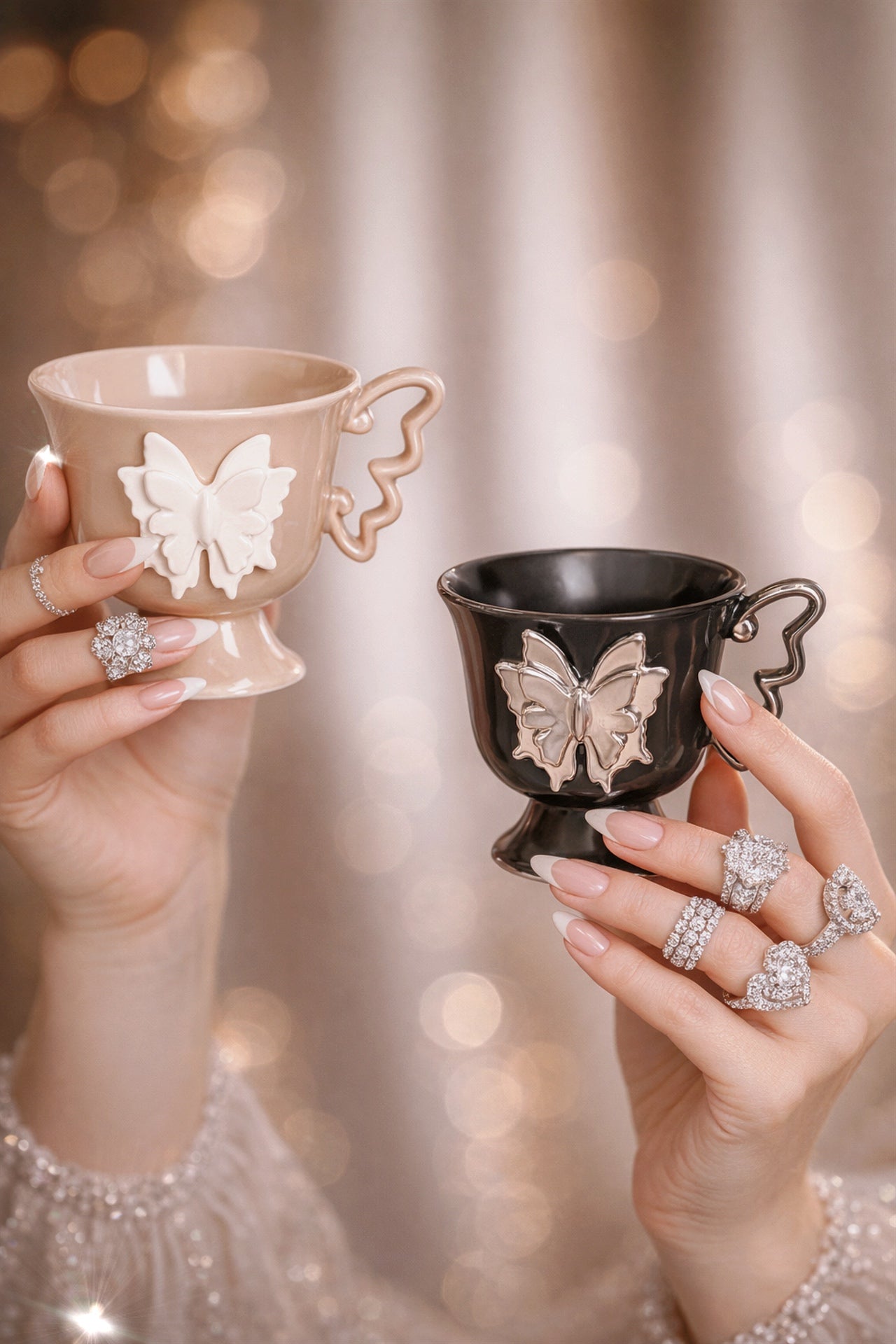 Delicate butterfly details bloom across each cup, elevating quiet moments into rituals of beauty. Designed to be held slowly and admired often, this set romanticizes everyday life, turning tea or coffee into an act of elegance.