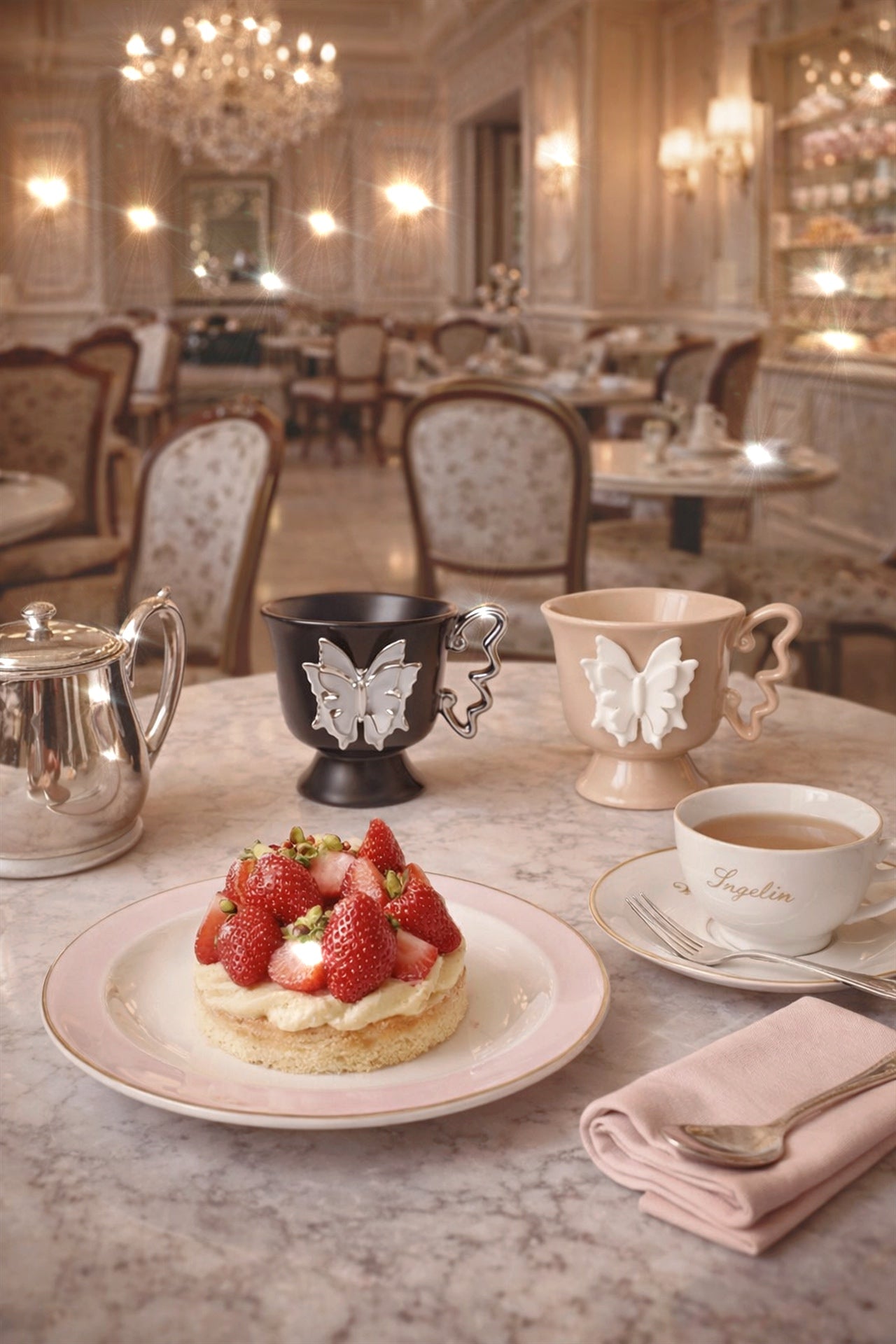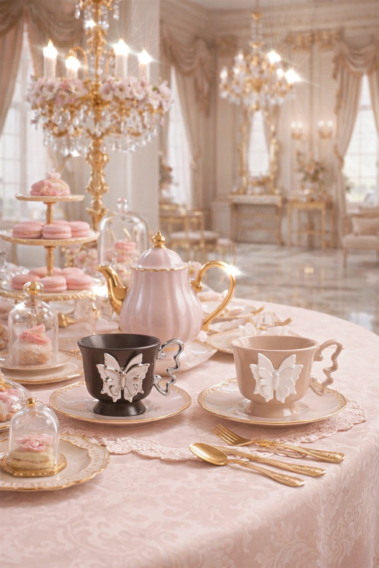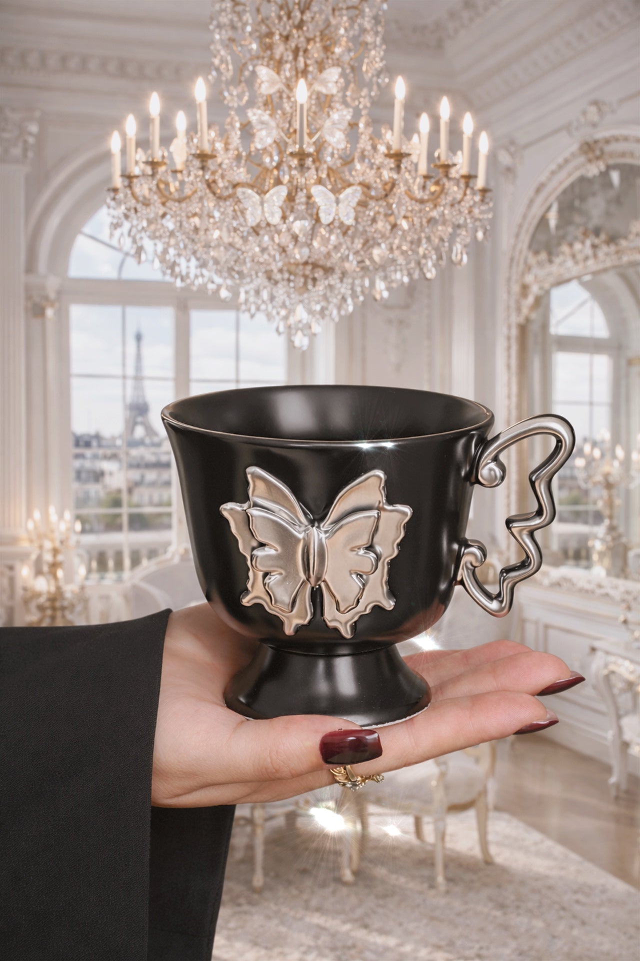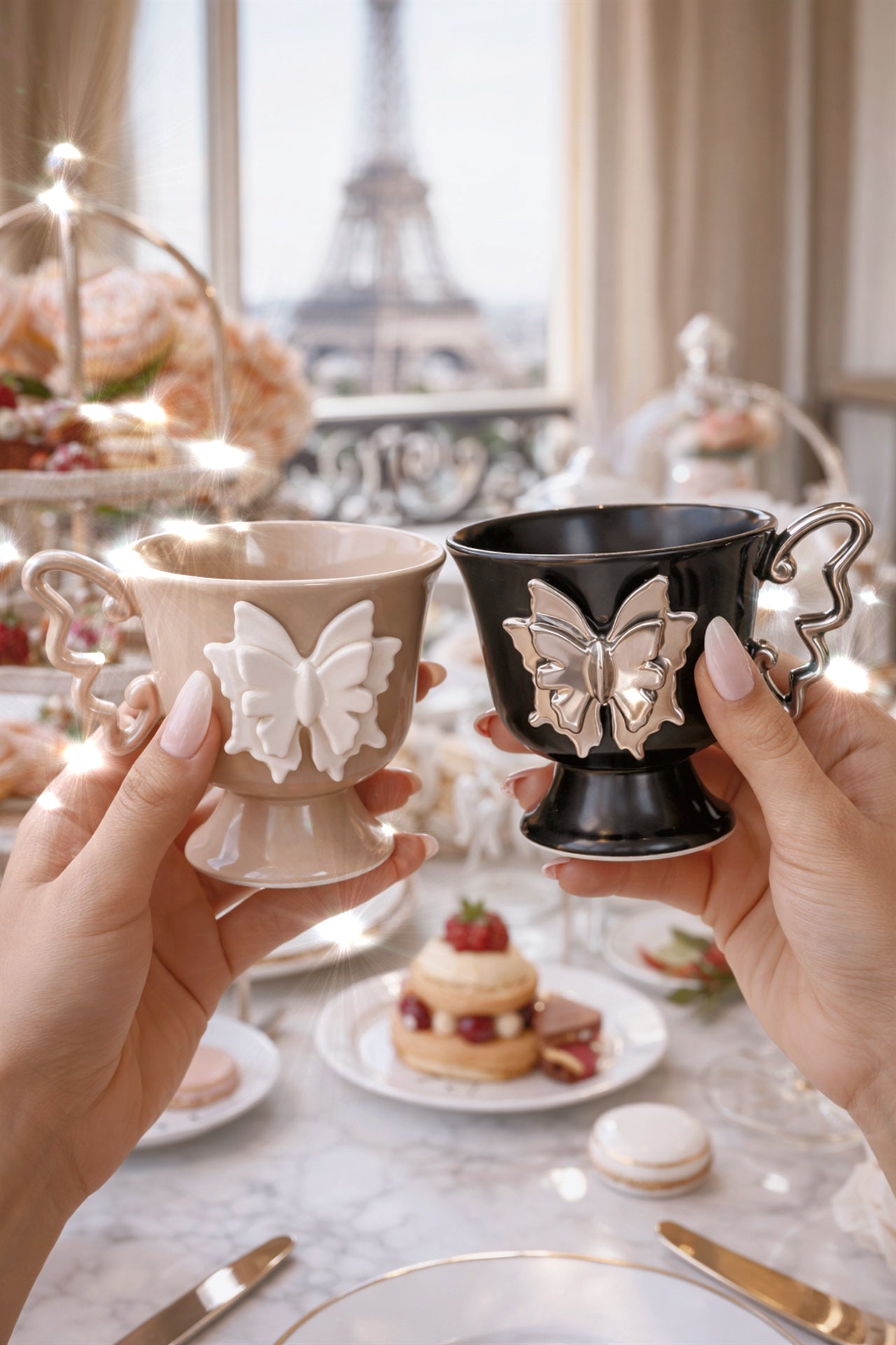 Delicate butterfly details bloom across each cup, elevating quiet moments into rituals of beauty. Designed to be held slowly and admired often, this set romanticizes everyday life, turning tea or coffee into an act of elegance.