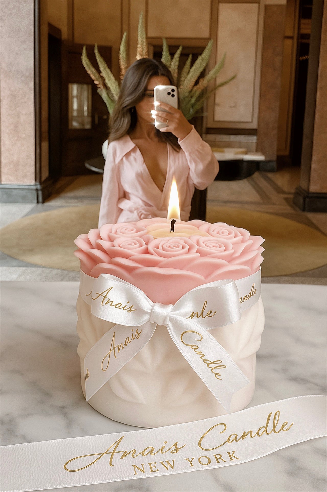 Inspired by the grandeur of floral ateliers, the Lavish Rose Bouquet Candle is the ultimate symbol of romance and extravagance. Sculpted to resemble a hand-tied bouquet of blooming roses, this XXL masterpiece captures the drama of receiving not just one rose, but an entire bouquet eternalized in wax and light. Wrapped with an Anaïs satin bow, it embodies couture luxury and the art of gifting at its most opulent.