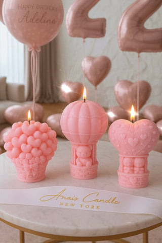 Balloon Bear Candle Set of 3 in French Rose Pink