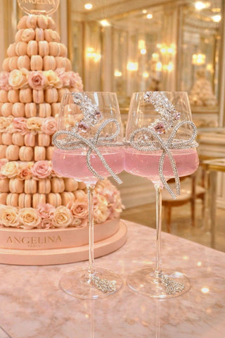Juego de 2 copas de champán La Vie En Rose, hechas a mano