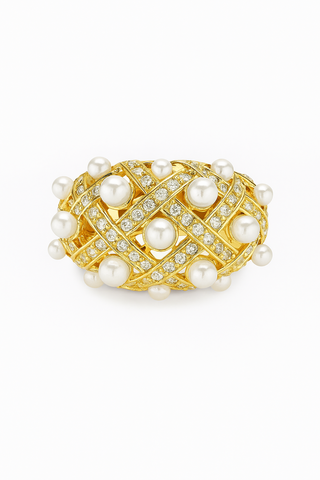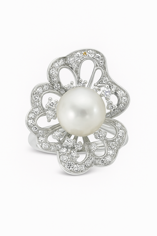 Anillo ajustable con diseño de flor, perla y diamantes de imitación