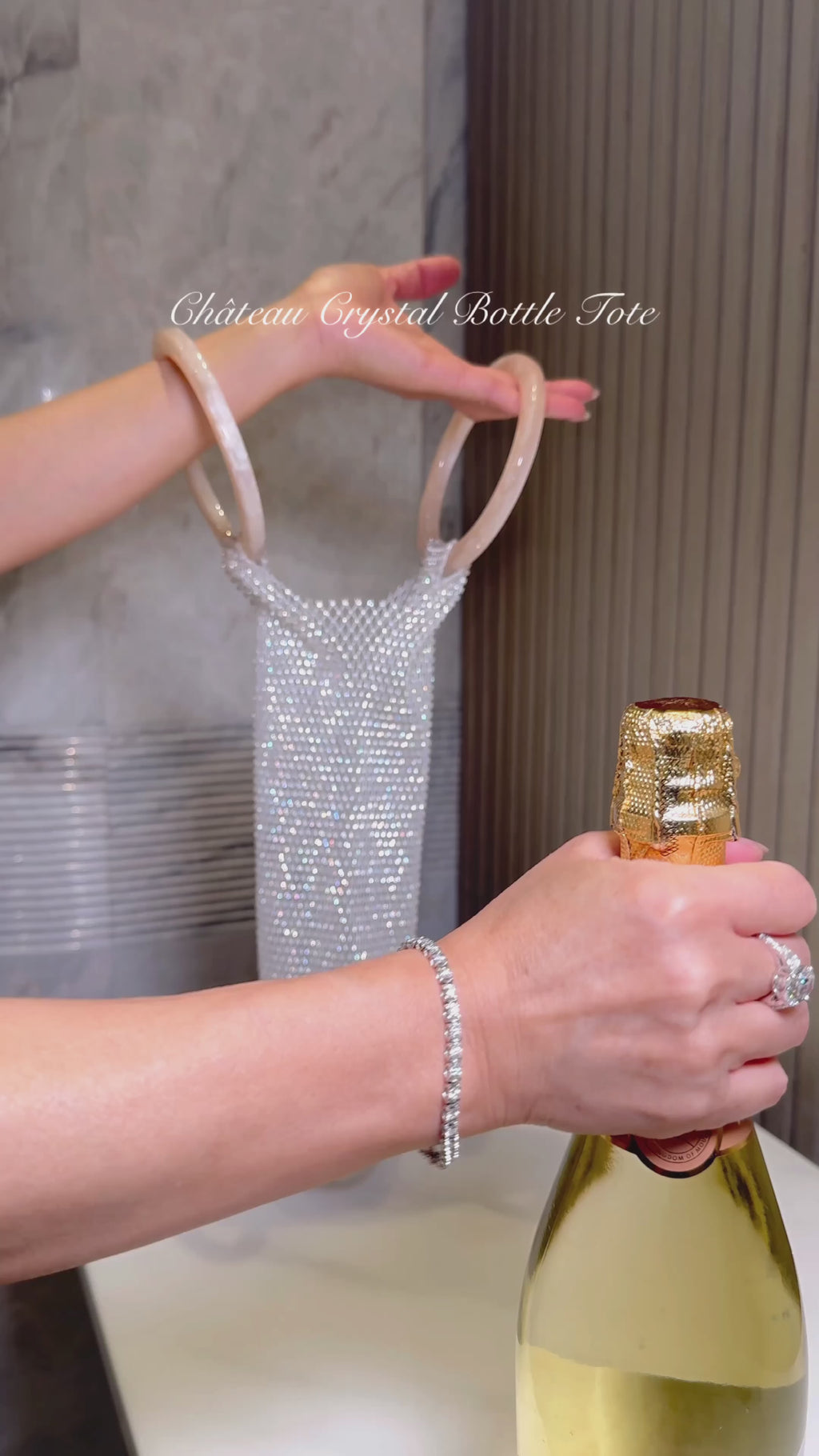 Wrapped in elegance. The Château Crystal Bottle Tote turns any bottle into a moment. Designed to drape your wine or champagne in elegance. It’s the perfect finishing touch for any celebration. Reusable, romantic, and effortlessly luxurious.