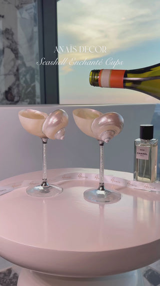 Sip like a siren. Seashell Enchanté Cup™️ Set of 2 in Crystal — a luxurious duo of wine cups crafted from real seashells, delicately perched atop gleaming crystal stems. Each cup is a wonder, echoing the timeless elegance of the ocean.
